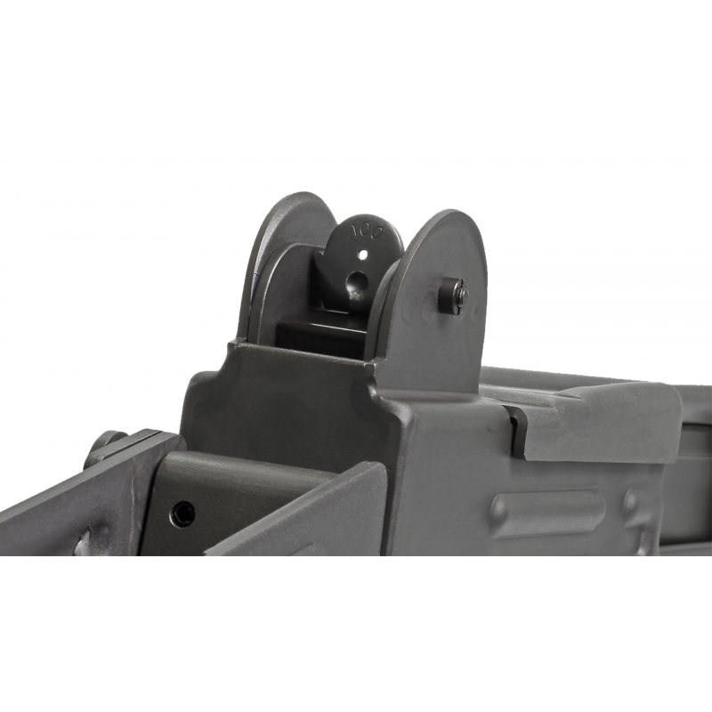 The replica also boasts a typical folding stock, bayonet attachment, two sling rings, grip safety and a steel magazine that holds 32 rounds.