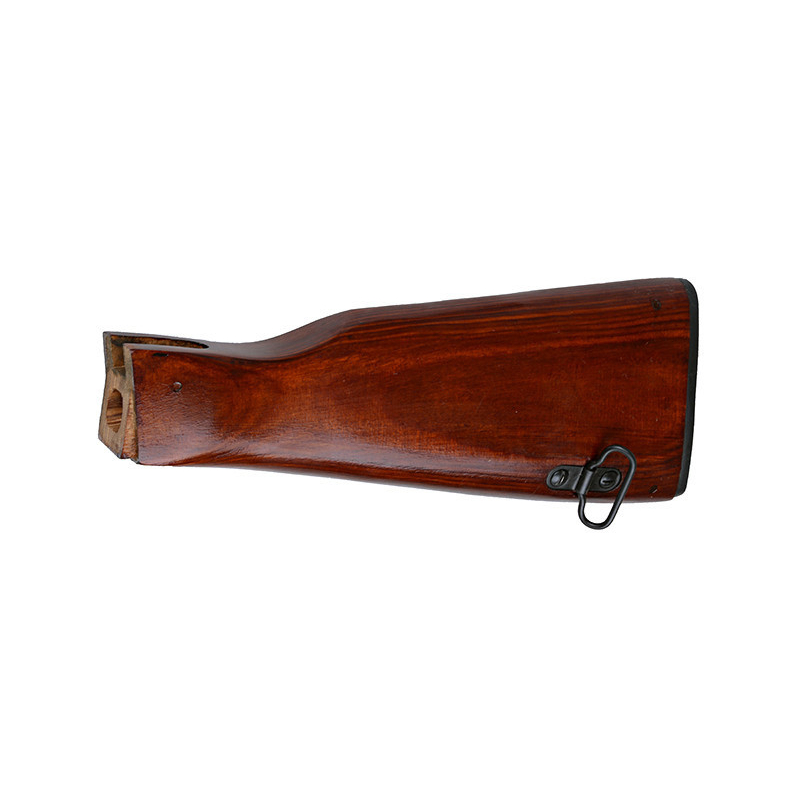 The AKM wooden stock by E&L is made from genuine laminated wood with a glossy finish that gives your rifle an authentic 1980s appearance. It's a popular upgrade not only among players but also among reenactors and collectors. The steel and wood construction ensures durability and long service life. Inside the stock is a compartment with a hinged lid designed to fit the original E&L cleaning rod. On the side, you'll find a steel sling loop for Soviet-style or compatible slings. Installation is easy – if you're using an E&L gun, it fits straight out of the box. With other compatible brands (LCT, CYMA, VFC), some minor adjustments may be required.