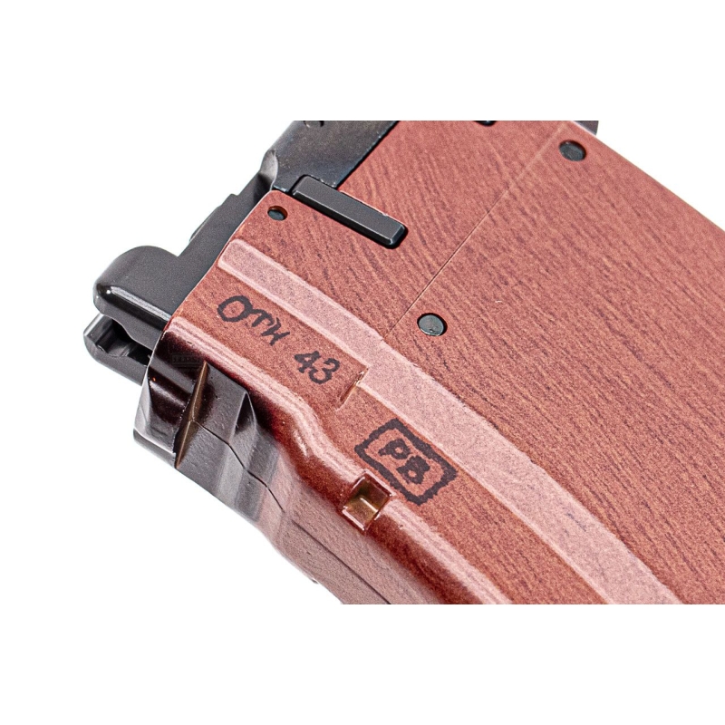 Magazine's feeding mechanism and sealing are designed with emphasis on reliability, ensuring stable weapon performance and minimizing gas faltering risk. Secure attachment using magazine catch lock ensures magazine stability during use and reduces the risk of accidental dropping or movement during action.