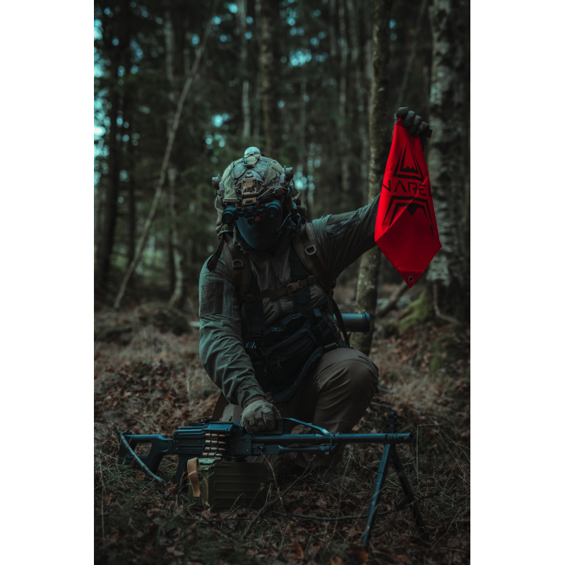 Reflective scarf with eyelets and velcro panels from our Anareus Game Equipment (AGE) range and with the ANAREUS logo printed on it.