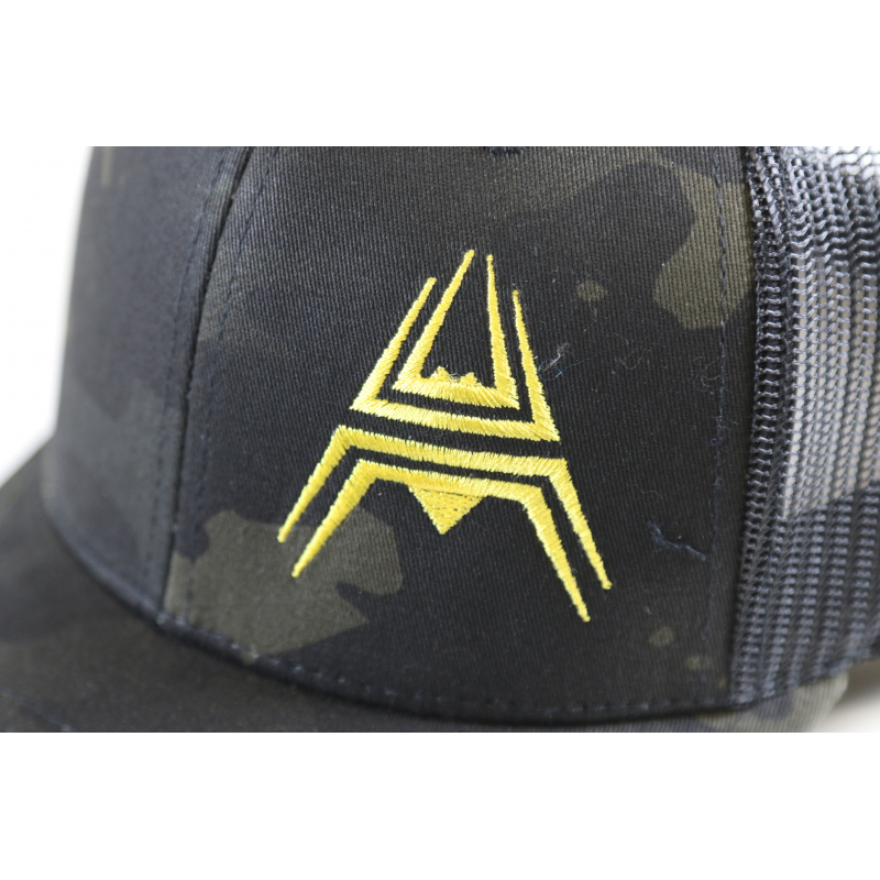 Retro Trucker Cap ANAREUS Spider logo yellow - Multicam BLACK®