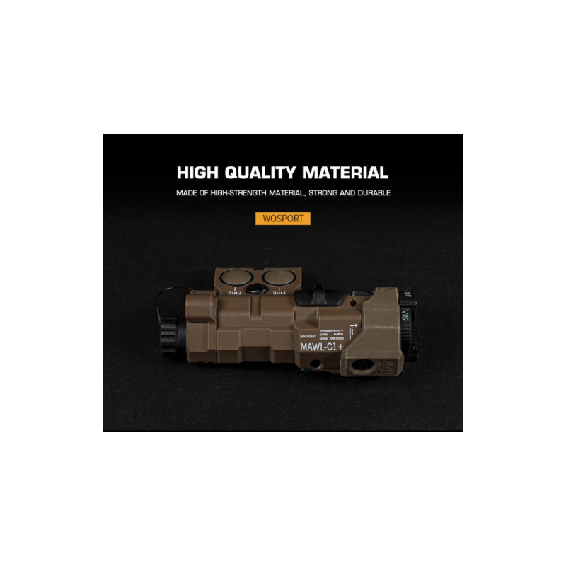 Battery box MAWL-C1 from WoSport is a precise replica of the laser sight MAWL-C1, serving as a practical storage space for batteries with dimensions approximately 90 x 15 x 15 mm (depending on the length of the power cable and balance connector).