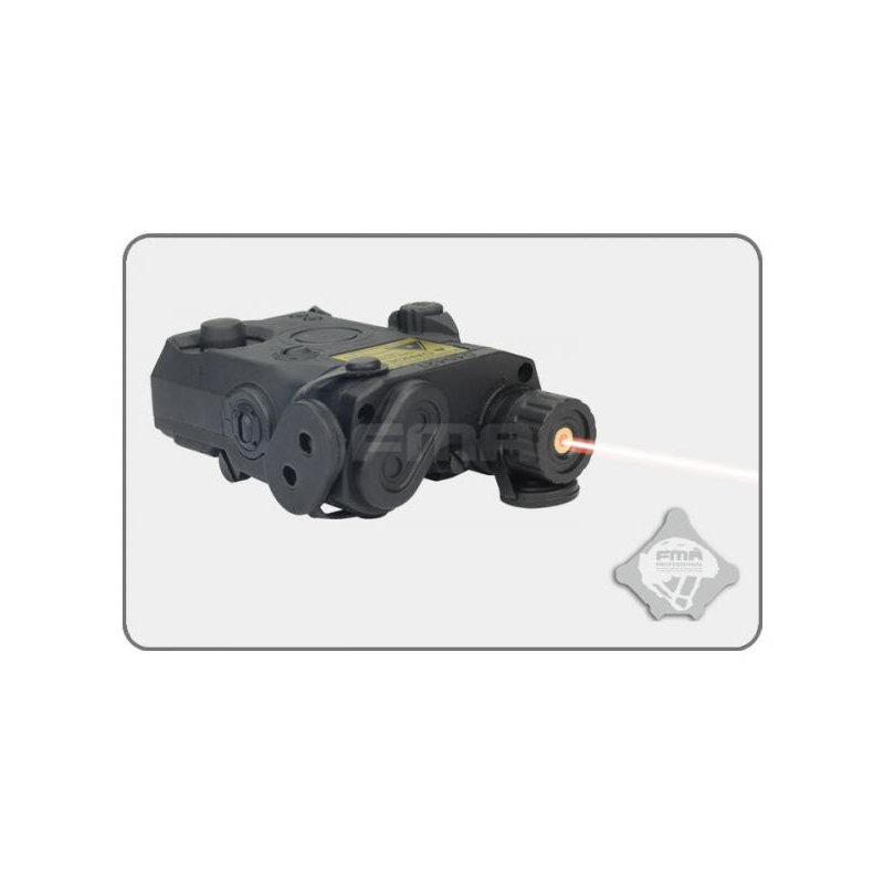 This battery box is a replica of the PEQ 15 LA-5 module and is designed to hold smaller Li-Pol batteries such as the PEQ Monoblock and Mini Stick (for weapons with wiring in the handguard) or as a realistic imitation for MilSim players. The box is empty, but the front section contains a red laser module that emits a beam to a single point, but cannot be adjusted for precise aiming. The laser is powered by 3 LR44 batteries, which are not included.