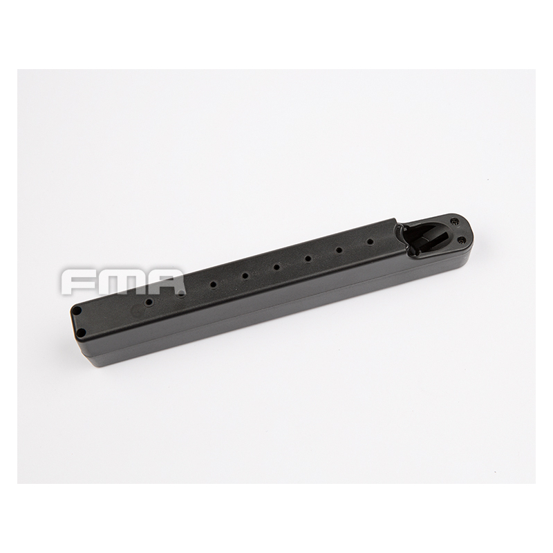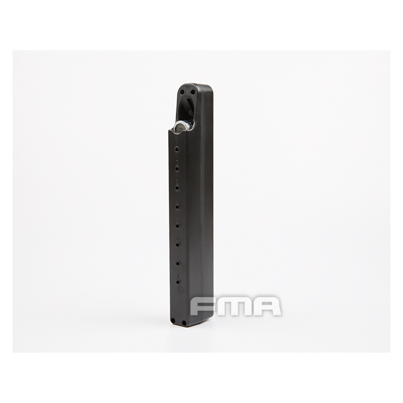 The battery case by FMA not only looks and functions like a magazine but also provides organized, protected storage and transport for your batteries. Its sturdy construction protects batteries from damage, dirt, and moisture. The spring-loaded feeder keeps batteries at the top of the magazine, making them easy to dispense with a thumb push, just like cartridges.
