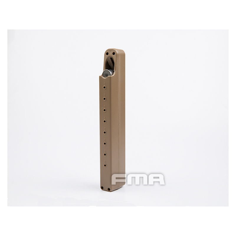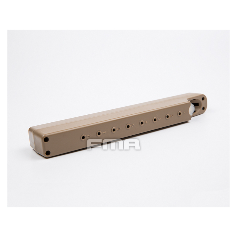 The battery case by FMA not only looks and functions like a magazine but also provides organized, protected storage and transport for your batteries. Its sturdy construction protects batteries from damage, dirt, and moisture. The spring-loaded feeder keeps batteries at the top of the magazine, making them easy to dispense with a thumb push, just like cartridges.