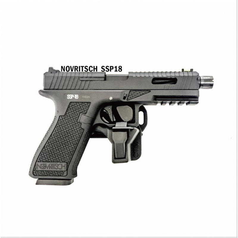 SSP18 GBB Airsoft Pistol by Novritsch in black. Single or Full-Auto fire with a rate of fire up to 17 BB/s. CNC aluminum slide. Fixed FXB outer barrel and a 6.01 mm precision inner barrel. CNC hop-up unit suitable for BBs up to 0.32 g. Compatible with G-Series magazines and holsters (TM, WE, SSP18, and others). 14 mm CCW thread for suppressors or...
