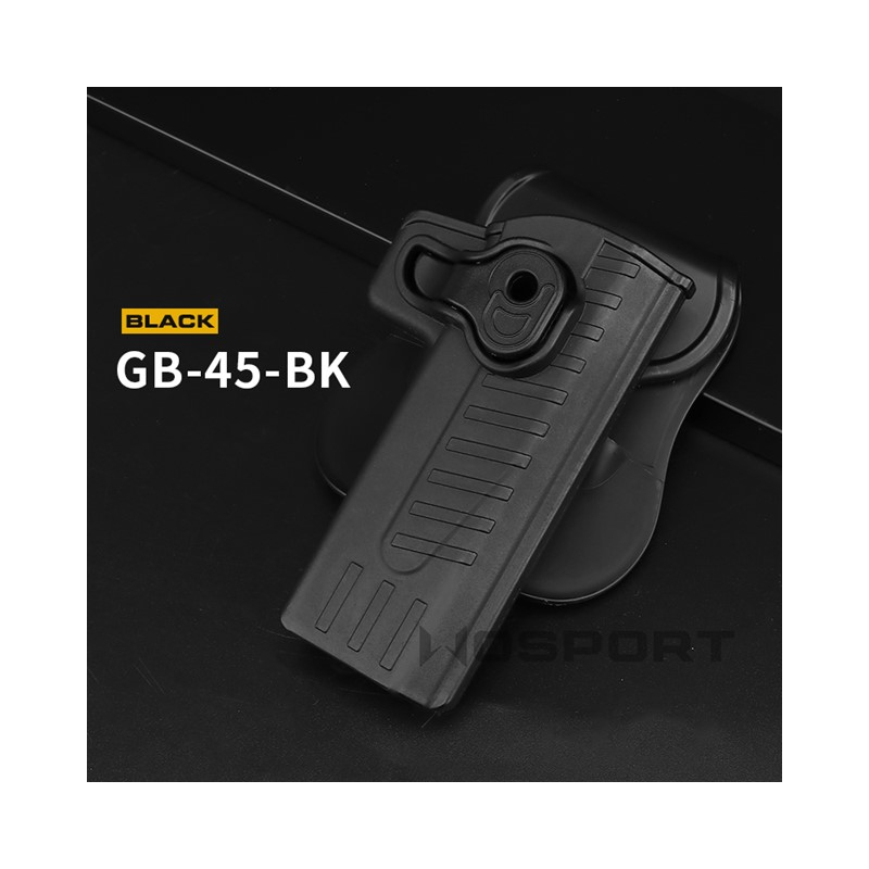 Hi-Capa Belt Holster is made from durable nylon, providing reliable protection and long lifespan for the holster. The holster is designed with a focus on safety during weapon carry and quick draw. Its unique design uses a retention system on the holster body that keeps your pistol secure in the holster even while running and an adjustable screw for the holster tilt angle, allowing you to set the drawing angle of the pistol to your preference.
