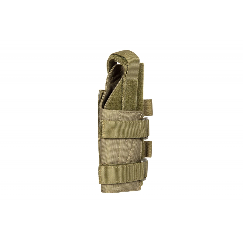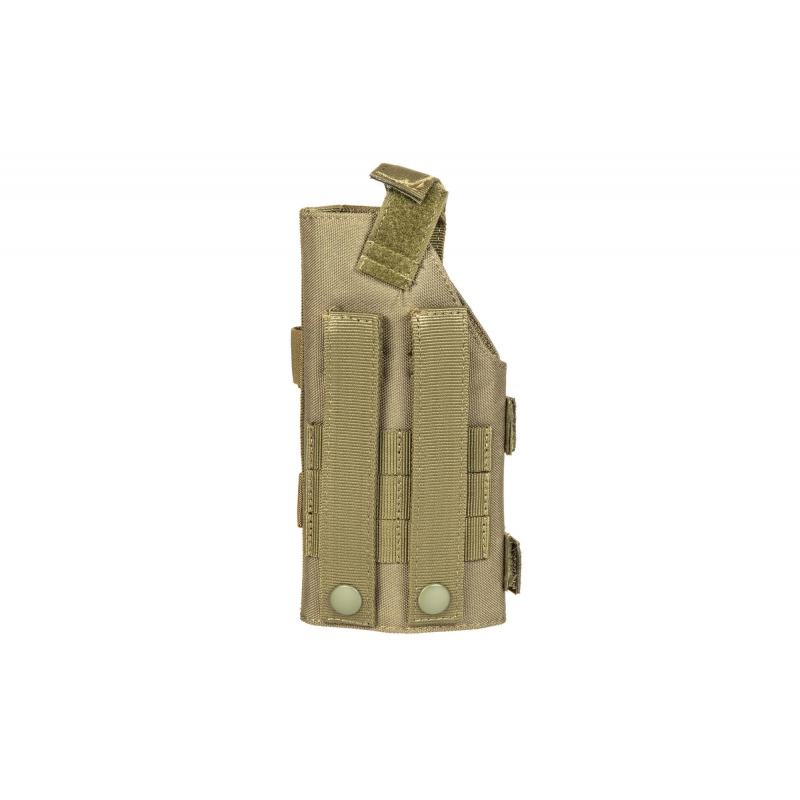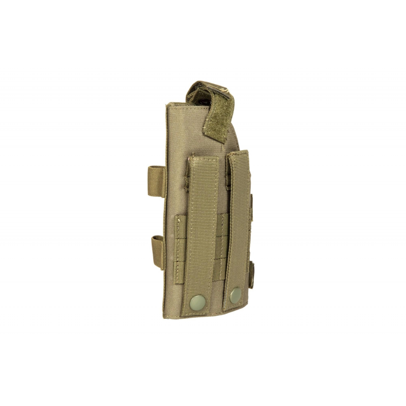 The holster is made out of durable nylon. It is mounted with Molle Pals. Its height is 195 mm with the possibility of adjustment. The width of the holster is also fully adjustable. Thanks to this, it can accommodate both a compact and large pistol as well as non-standard models.
