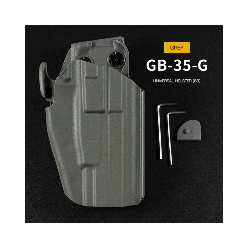 The Universal Belt Holster GB35 is made of durable nylon, providing reliable protection and long-lasting performance. The holster is designed for safety during weapon carrying and quick draw access.