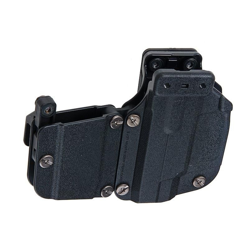 With a quick swap of adapters, you can convert it into an outside-the-waistband holster (OWB), perfect for fast response in airsoft or other shooting disciplines. If you need to use the holster as a standard MOLLE holster on a plate carrier, the MOLLE adapter is included.