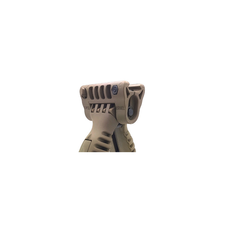 Folding bipod for forestock of airsoft rifles with RIS rail. Thanks to this handy gadget you can use the bipod as a grip in the folded version and if necessary split the metal legs to get more stability for shooting from a prone position or when leaning on an obstacle.