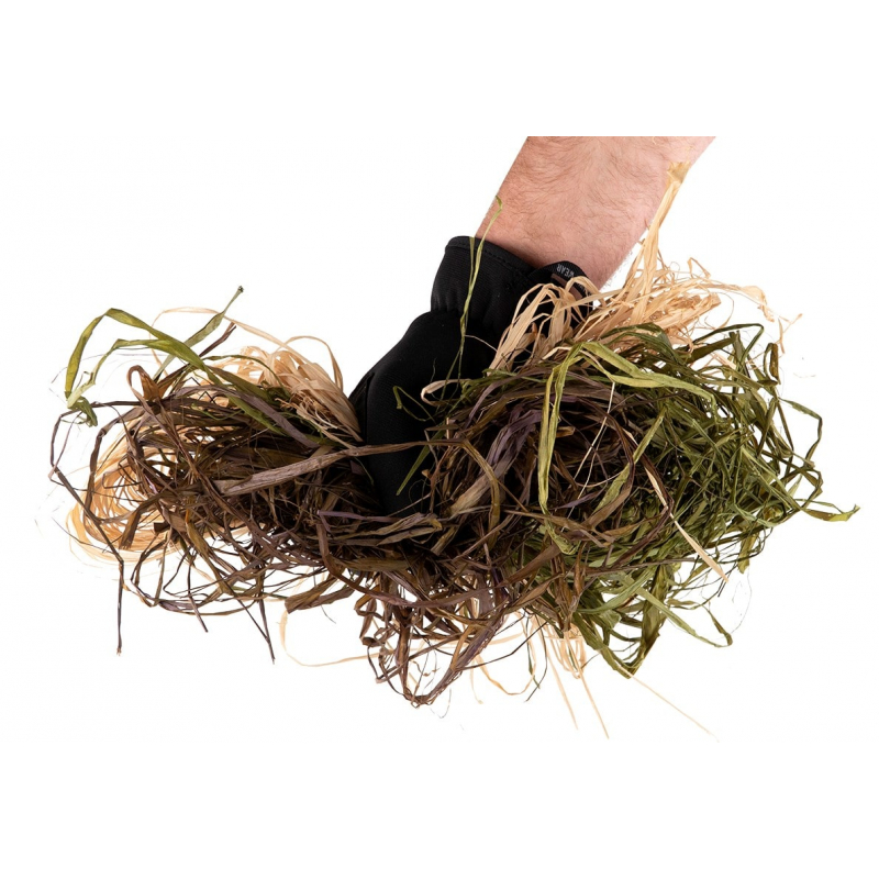 Looking to break up your body’s silhouette? Need a lightweight and versatile camouflage material that you can easily add to your ghillie suit, cover, or gear? Searching for durable artificial raffia-like fibers that replicate natural grass? The RAFFIA CAMO set from Novritsch includes synthetic grass strands in four natural shades – tan, brown, light green, and dark green. They tie easily like strings and, thanks to the balanced color mix, blend seamlessly into most outdoor environments. This set can be used independently or combined with the Novritsch Leaf Camo System or ANAREUS SilkLeaf for a complete natural camouflage setup.