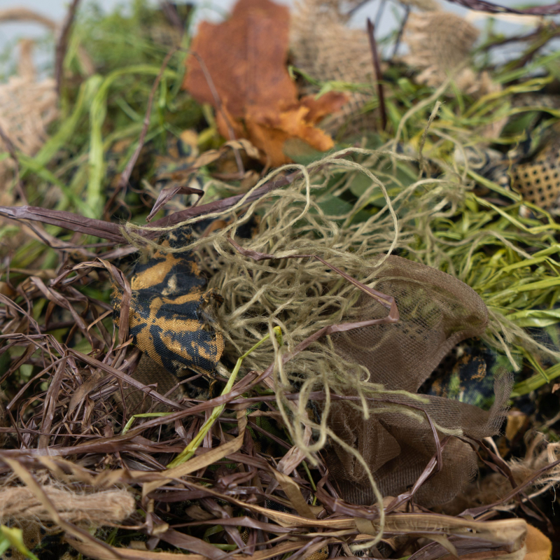Do you want to break up the silhouette of your body? Looking for lightweight and universal camouflage that you can easily add to your ghillie suit, camo cover or gear? Do you need material thinner than classic raffia but still durable enough? The BURLAP CAMO set by Novritsch contains synthetic jute strands in 3 natural colors – tan, khaki, and dark green. Easily tied on like cords, and the color mix blends perfectly with the environment. The set can be used standalone or combined with the Novritsch Leaf Camo System, ANAREUS SilkLeaf, or SilkGrass for the ultimate camouflage effect.