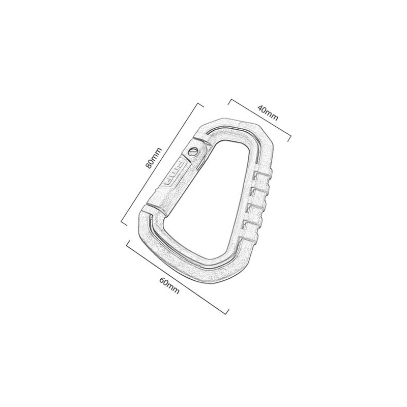 The D-HOOK carabiner by FMA features a simple yet reliable mechanism that ensures secure attachment. Its design allows for easy one-handed opening and closing, making it perfect for quick attachment and handling of items.