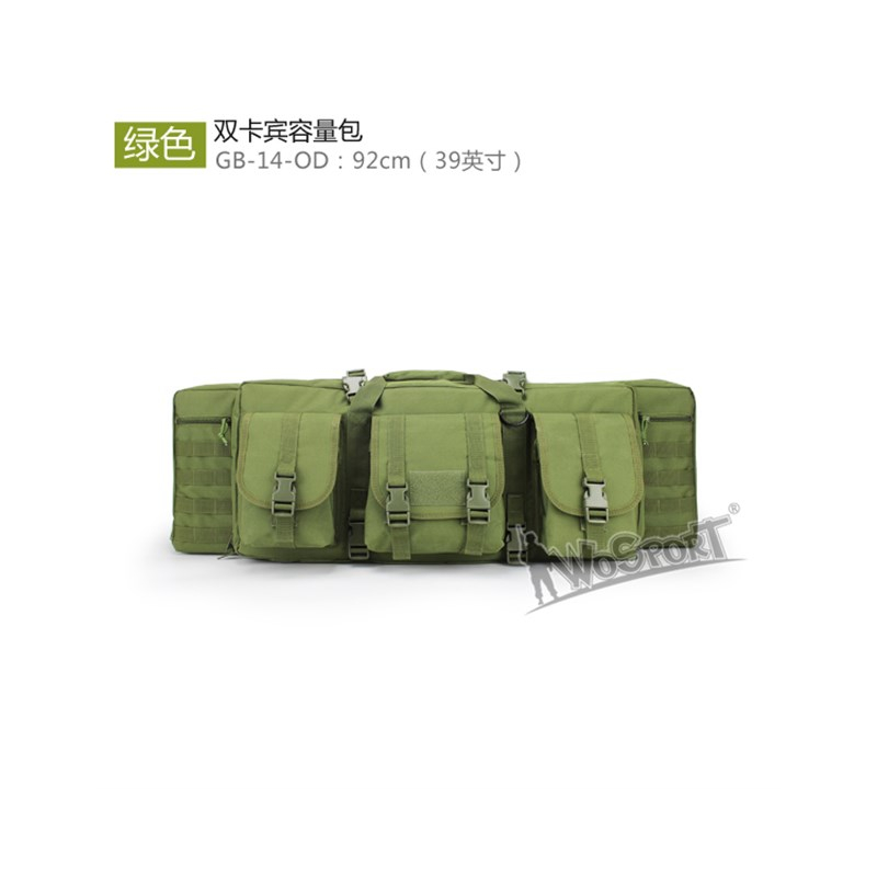 View larger Practical portable bag for two long guns. The material used is durable 600D Ofxord cloth. There are plenty of practical pockets on the bag for storing additional equipment. The bag can be worn on the back thanks to the straps. Available in several colour options.