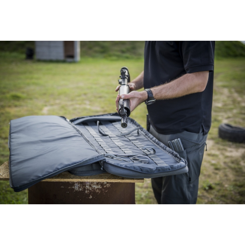 The Double Upper Rifle Bag 18® is designed for secure and convenient transport of two rifles in AR15 or AK style. The bag accommodates an AR15 rifle with optics and an additional upper receiver, or two short AR15 or AK rifles in standard configuration (without sights). The main compartment features a system of adjustable loops to secure the rifles in place during transport. It also includes elastic loops for storing accessories and cleaning tools.
