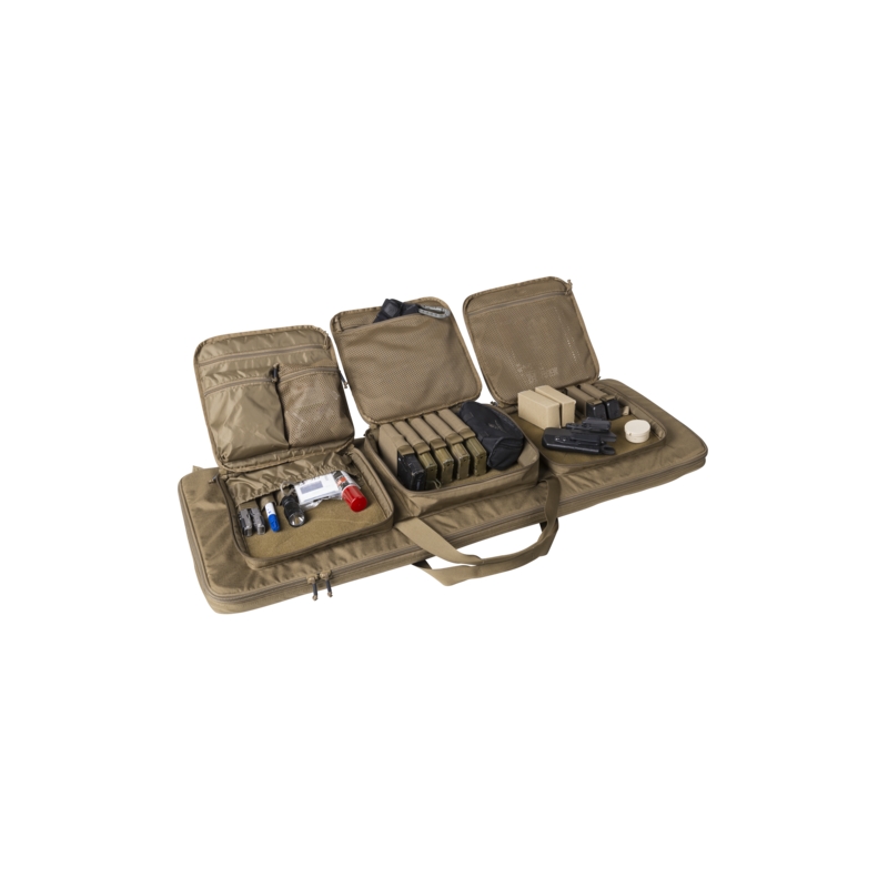 The Double Upper Rifle Bag 18® is designed for secure and convenient transport of two rifles in AR15 or AK style. The bag accommodates an AR15 rifle with optics and an additional upper receiver, or two short AR15 or AK rifles in standard configuration (without sights). The main compartment features a system of adjustable loops to secure the rifles in place during transport. It also includes elastic loops for storing accessories and cleaning tools.
