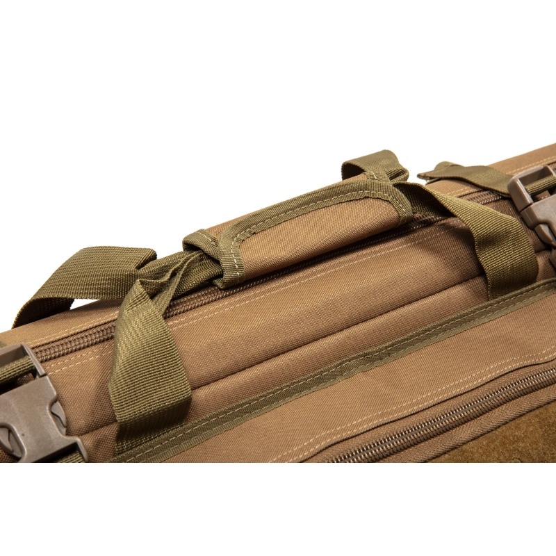 Specna Arms transport bag URBAN WAR in tan finish is a durable bag for safe transport of firearms and airsoft rifles up to 87 cm. It offers space for 2 long guns, practical accessory pockets and backpack carry option. Made from Cordura 1000D and durable nylon with padding to protect your gear during transport. The bag features MOLLE webbing and a VELCRO panel.