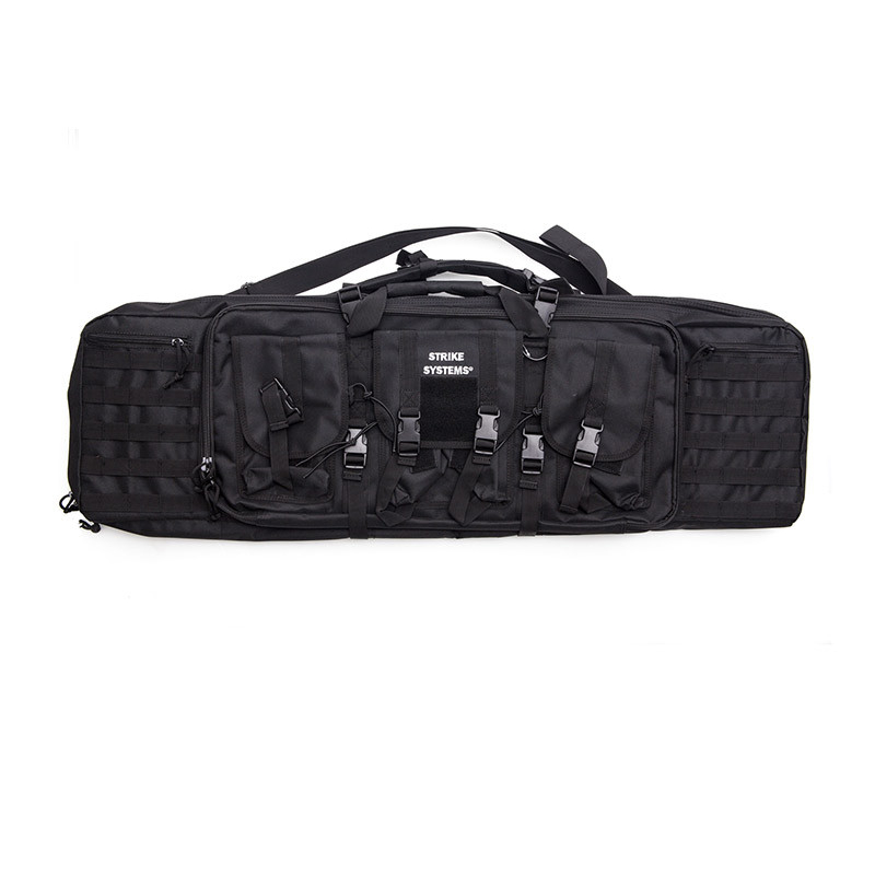 This multipurpose tactical bag from Strike Systems® (ASG) is designed for safe transport and storage of airsoft rifles and equipment. The main compartment fits 2 long guns, separated by a padded internal divider. A second large zippered section includes 2 padded pistol pouches and 2 inner zip pockets.