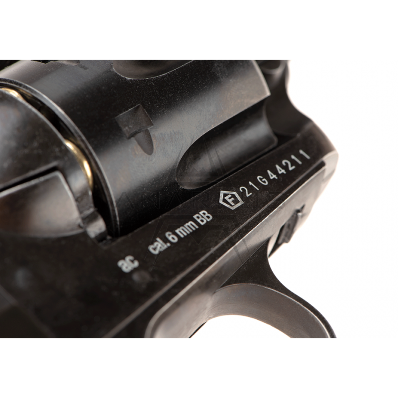 Thanks to its full-metal construction and a weight of nearly 900g, the gun feels incredibly realistic in hand. The revolver operates on a 12g CO2 cartridge, providing consistent power and stable muzzle velocity of up to 140 m/s (1.96 J) with 0.2g BBs. The firing system is Single Action, meaning the hammer must be manually cocked before each shot, just like a real Western revolver.
