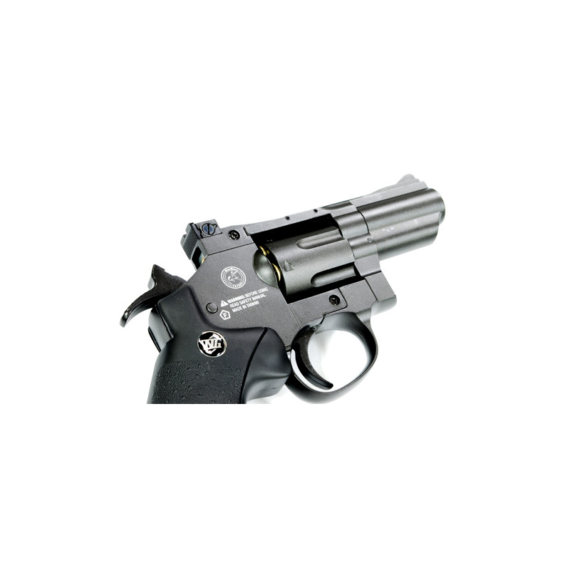 Each shot is loaded individually using realistic cartridges inserted into the cylinder. The package includes a speed loader for efficient reloading. This revolver does not have a hop-up system.