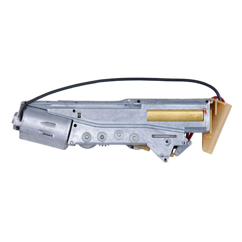 CYMA complete gearbox is an original replacement part designed for electric airsoft pistols (AEP) CM.030 G-Series 18C. This fully assembled metal gearbox includes all internal components and comes with a motor and wiring. It is intended for the standard AEP CM.030 version without MOSFET and is ideal for repairs or full replacement of the original gearbox. Installation requires expertise in AEP pistols and basic soldering skills.