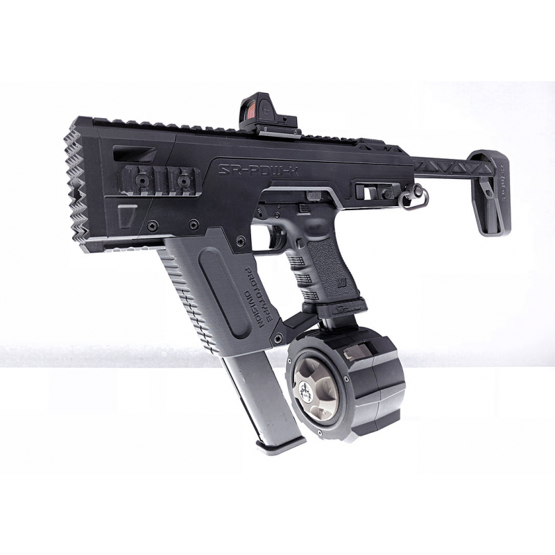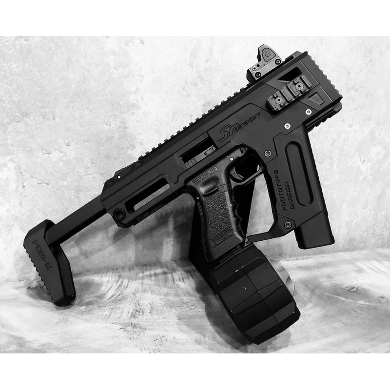 Conversion kit for electric and gas pistols type GLOCK made using 3D printing.