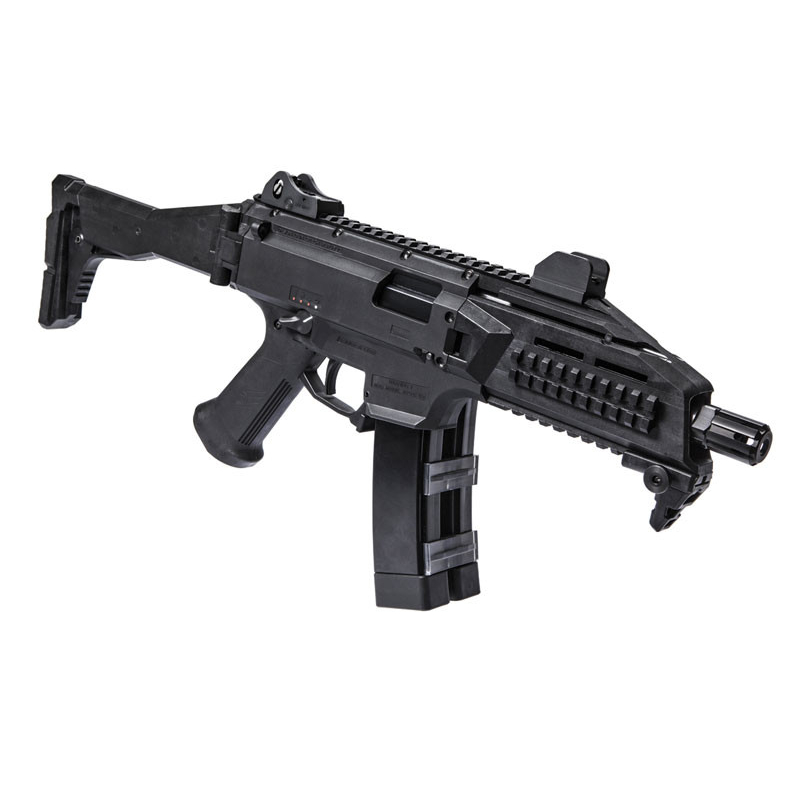 From an airsoft perspective, the CZ Scorpion EVO 3 A1 symbolizes European engineering and design. Its body, made from durable polymer reinforced with fiberglass, mirrors the real firearm, while the 75-round polymer magazine ensures lightweight durability. The design includes an extended magazine well for quick reloading and elongated controls for easy handling, even with gloves.