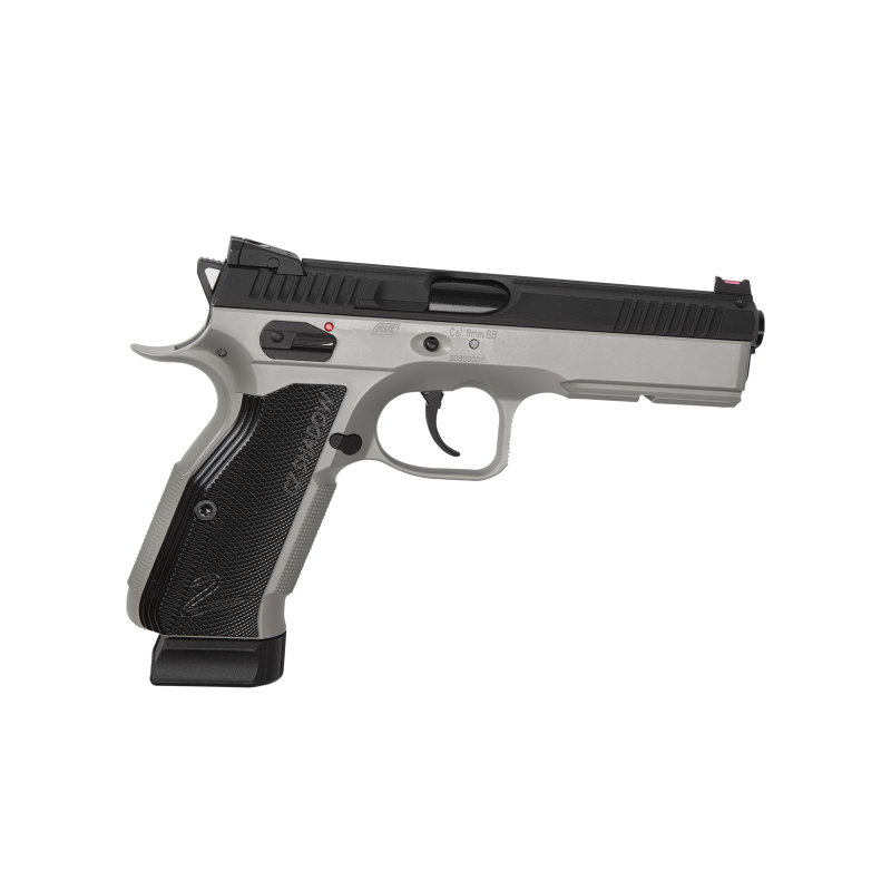 CZ 75 SP-01 SHADOW ACCU GBB CO2 Pistol by ASG in Urban Grey. ACCU competition-enhanced version suitable for IPSC. Realistic design with a metal slide and blowback effect. Licensed CZUB replica with fiber optic sights. Ergonomic grip with smooth aluminum panels for comfort and control. Fully field-strippable like the real firearm. Large slide catch...