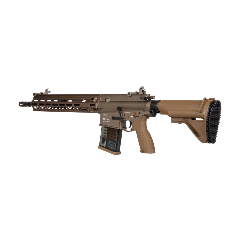 Heckler & Koch HK M110 A1 represents the pinnacle of S-AEG (single-shot only) rifles, appealing to both airsoft players and collectors. Inspired by the legendary US Army M110 A1 service rifle, it offers not only excellent quality full-metal construction and realistic surface finish but also maximum functionality in the field as a DMR airsoft rifle.