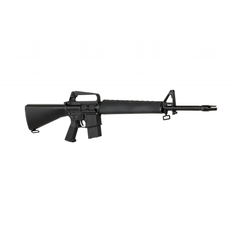 The replica Double Bell M16 A1 VN stands out for its high-quality external processing. It is matte black, giving it an elegant look. Ergonomic design and durable construction ensure comfortable wearing and easy handling. Overall, it's a rifle that combines top performance with an attractive design of Vietnamese classics for the ultimate airsoft experience.