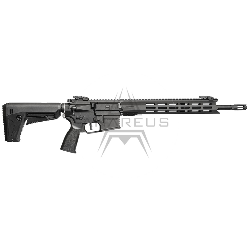 The rifle's body is made of anodized aircraft-grade aluminum for maximum durability and minimal weight. The TR413 M-LOK handguard is CNC machined from T6 aluminum and hard anodized for enhanced durability. A large trigger guard allows comfortable handling even with gloves. Ambidextrous safety selector and magazine release make it friendly for both left- and right-handed players. The low-profile stock is adjustable in 6 positions and designed to fit Buffer Stick batteries. The ergonomic pistol grip supports natural hold. The barrel is finished with a 14mm CCW thread for mounting suppressors or tracer units.
