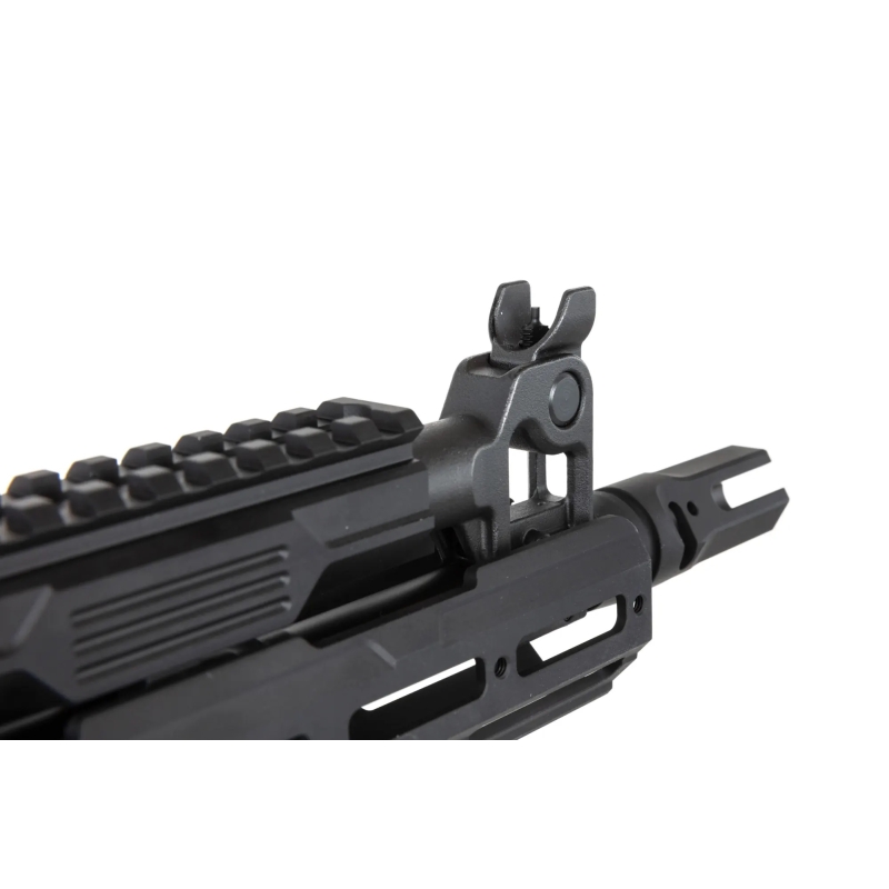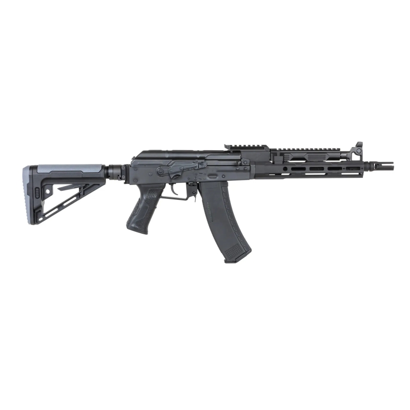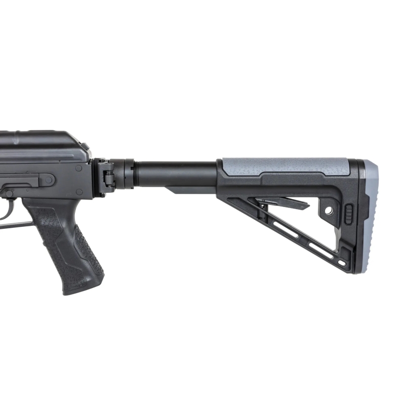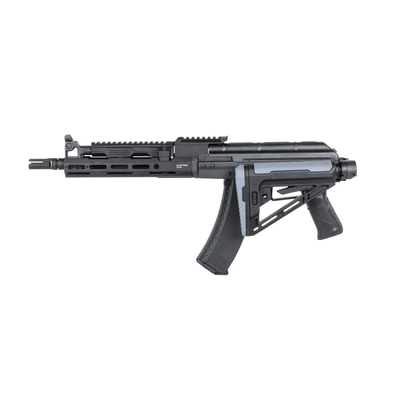 The Advanced Tactical AK MOD1 FE™ Carbine by Arcturus is a top-tier airsoft rifle that blends modern technology with the classic AK design. With precise craftsmanship and a rugged construction, it delivers exceptional performance straight out of the box. The receiver is made from stamped steel with QPQ surface treatment, ensuring high durability and longevity. Simply put, it's a solid piece of steel, incomparable to competitors using alloy bodies.