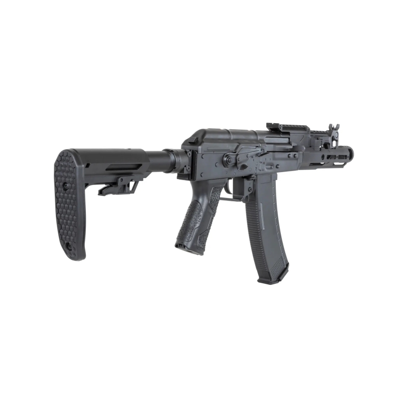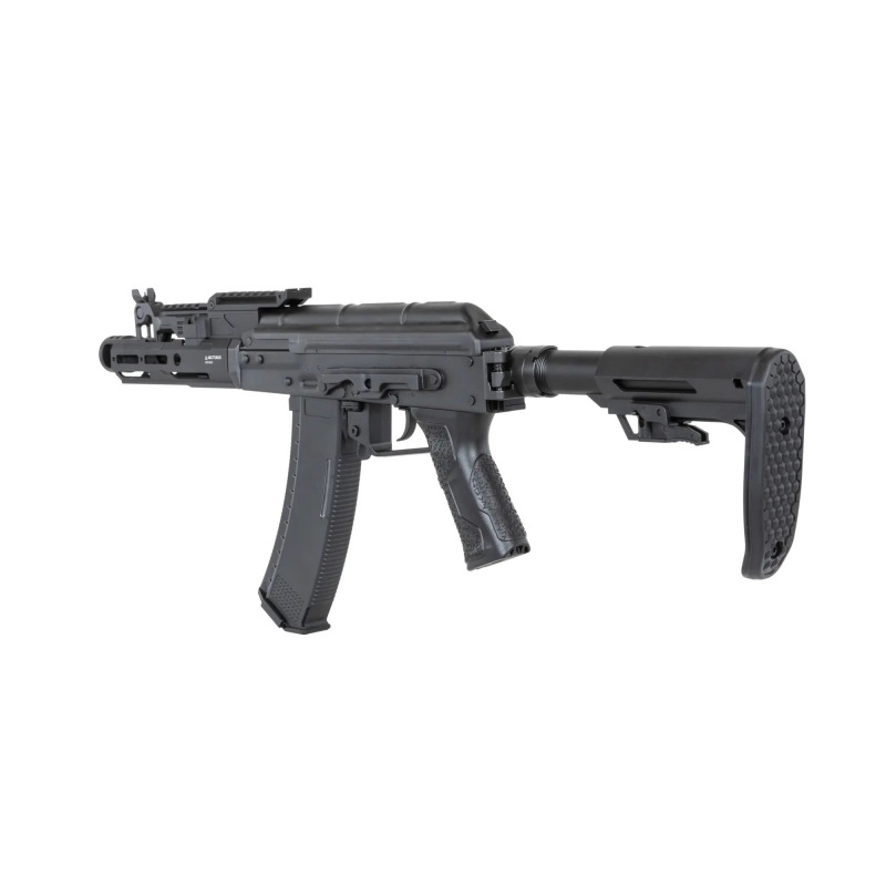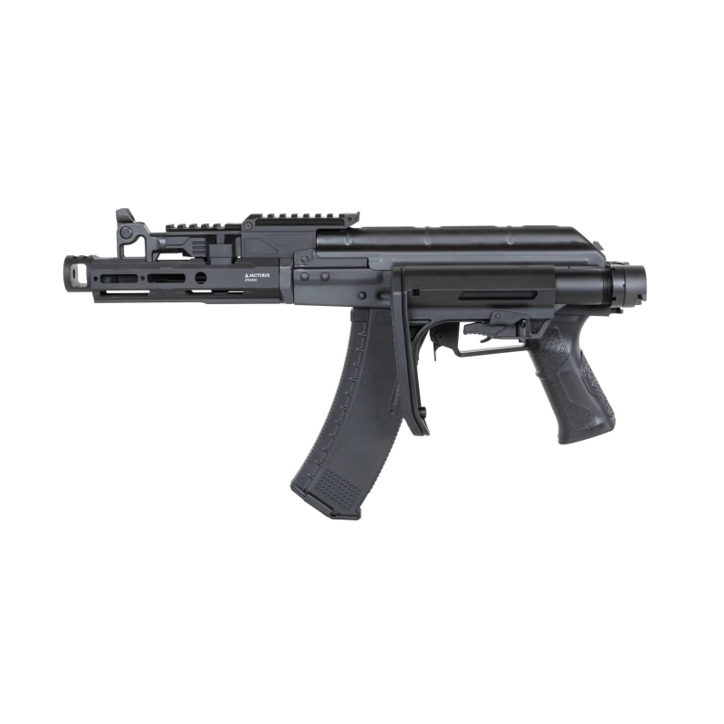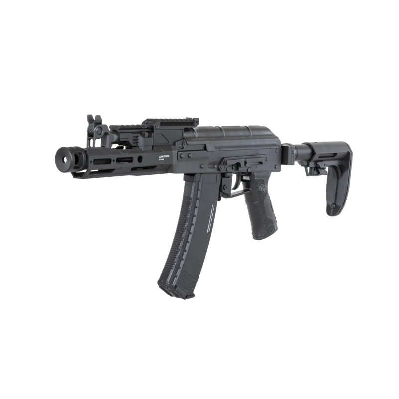 The Advanced Tactical AK MOD1 PDW FE™ Carbine by Arcturus is a high-end airsoft rifle that combines modern technology with the classic design of the compact AK74U. Thanks to its precision engineering and robust construction, it offers exceptional performance straight out of the box. The body is made from stamped steel with QPQ surface treatment, ensuring high durability and long lifespan. Simply put, it's a solid piece of steel that outmatches competitors with alloy bodies.