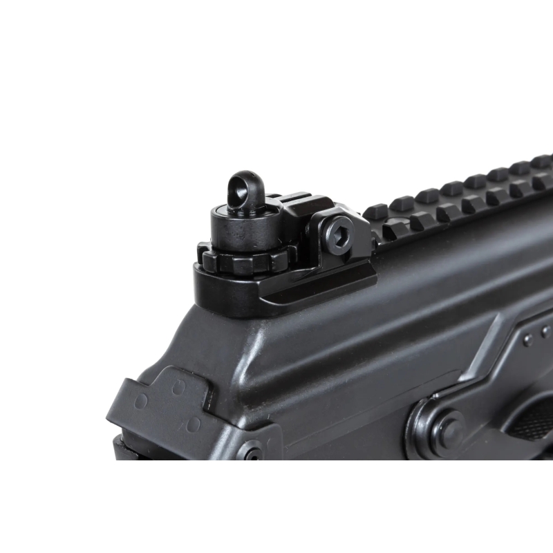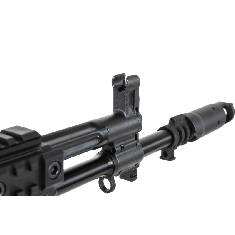 The rifle’s body is made of stamped steel with a QPQ surface treatment, protecting it against corrosion and wear. The traditional nylon RIS handguard is fitted with CNC RIS rails. The receiver cover also features a RIS rail for mounting optics.