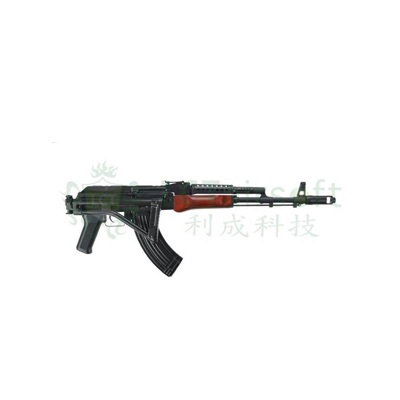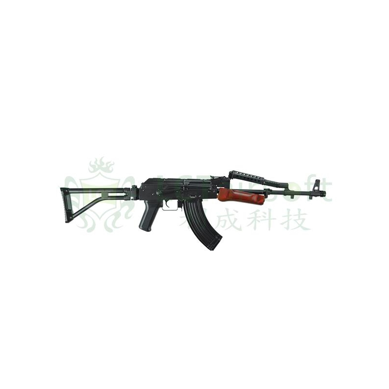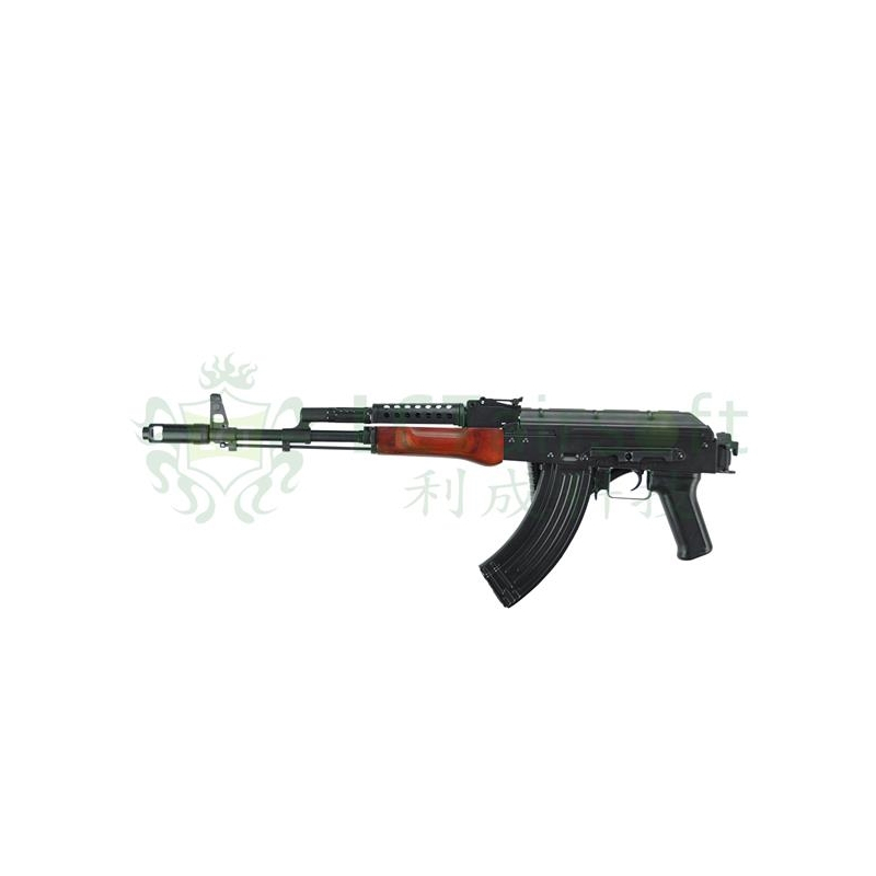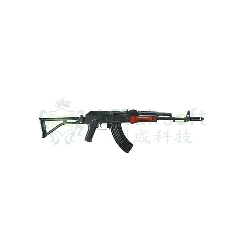 The G-03 is a beautiful replica of the standard Russian AKM assault rifle, fitted with a folding GALIL type stock. The body and control elements are made of steel, the handguard is a combination of wood and metal,the stock is steel, foldable. On the left side of the rifle there is a side bar on which you can place a rifle scope or a collimator. The weapon looks solid and is indistinguishable from the original model.