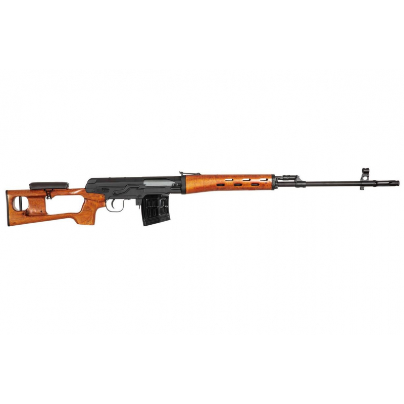 Replica of the Soviet A&K sniper rifle. Metal, steel and real wood were used for the production of the replica - just like in the original firearm counterpart. The outer barrel is made out of metal, together with the front sight and the muzzle device, the rear sight and the body, while the dust cover, the magazine and most of the small elements (including the firing mode selector), as well as the butt stock is made out of steel. The buttstock was made out of plywood, just like the front handguard. Additionally, the stock is fitted with a comfortable cheek pad.