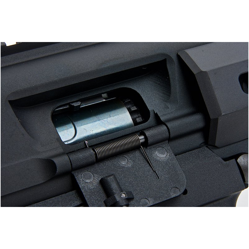 Inside, you'll find a VFC Avalon V2 gearbox containing a mosfet, quick spring change system, motor with neodymium magnets, M120 spring, and an additional free M100 spring. Consequently, the replica is fully compatible with TM standard V2 gearbox and can be upgraded over time. Out of the box, the weapon achieves a stable 120 m/s with a short inner barrel of 168 mm and is an ideal choice for any CQB arena! The recommended battery is Li-Pol 11.1V, wiring is led into the handguard and terminated with a Small Tamiya connector.