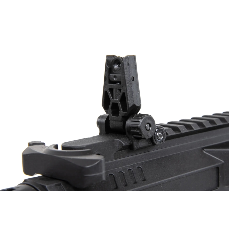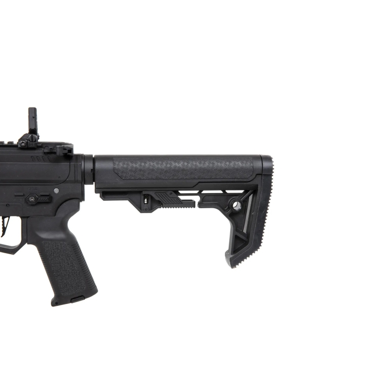 Specna Arms AR9 Light Ops Gen2 (SA-CX02 CORE™ HAL ETU™) relies on a lightweight yet durable CORE™ series nylon body reinforced with fiberglass, offering a realistic matte finish and excellent durability, often stronger than cheap metal alloy bodies. A metal outer barrel with a 14 mm CCW thread and steel components such as screws, pins or the ejection port add strength where it matters. The result is an extremely lightweight yet solid PDW platform that excels in movement and is ideal for CQB scenarios and dynamic gameplay. Controls are based on the AR-15 (M4) platform, making them intuitive and easy to learn. It features an ambidextrous charging handle, clear fire selector and easy hop-up adjustment via the ejection port. The magazine release uses a lever-style system similar to AK / CZ EVO, providing more secure and comfortable handling than a standard button while keeping the magazine firmly in place. The M-LOK handguard allows mounting accessories such as a vertical grip, tactical flashlight or a PEQ box. The new Light Ops stock with a rubber cheek rest and QD sling points keeps the setup lightweight. The battery is stored in the buffer tube, requiring a buffer stick type battery. Overall, this is a powerful rifle combining low weight, modern design and excellent Gen2 internals in one affordable platform. The CORE™ Gen2 series stands out for its build quality, offering upgraded internals such as the Æther™ gearbox with HAL ETU™, a metal nozzle, TDC hop-up chamber with Helium™ flat bucking and a 6.03 mm precision inner barrel.