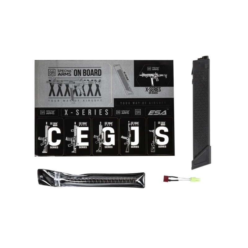 S-MAG Mid-Cap Magazine for AEG AR9 PDW / SMG by Specna Arms in black. 100 BBs capacity. Compatible with G&G ARP 9, Novritsch SSR9 and Classic Army PX9. Best choice for Specna Arms X-Series (PRIME™ and FLEX™). Reliable feeding even at high RoF. Durable and lightweight polymer body with textured surface for a secure grip.