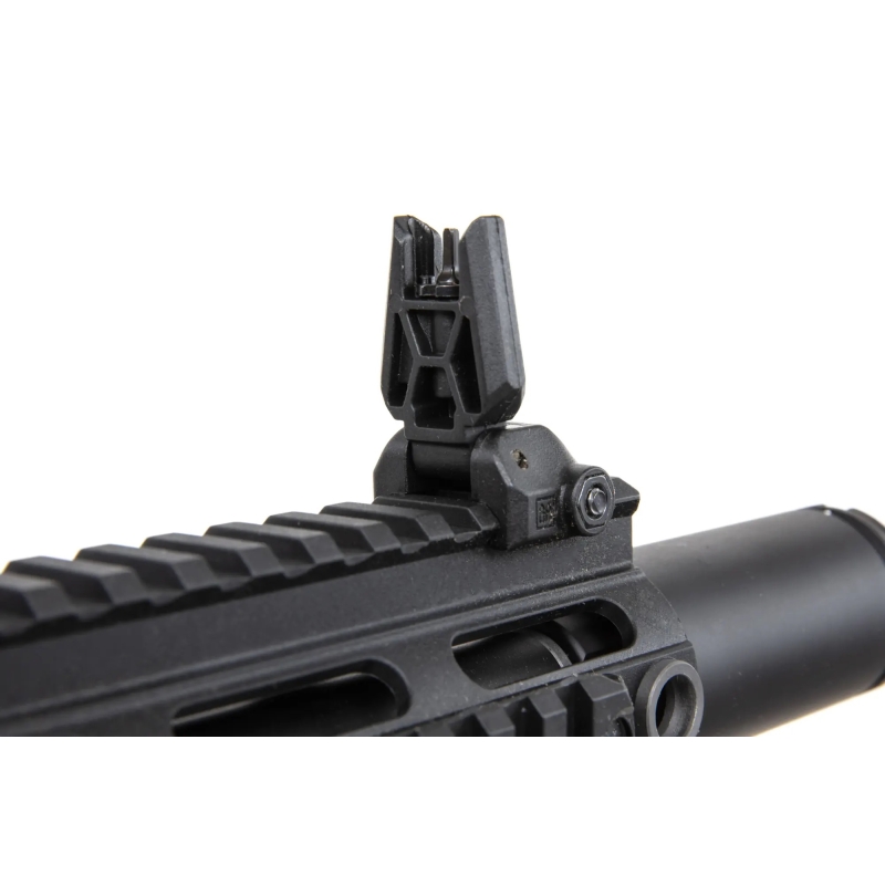 Specna Arms AR9 Light Ops Gen2 (SA-FX02 FLEX™ HAL ETU™) in black is a high-performance airsoft gun with 115 m/s velocity and upgraded internals. It features a HAL ETU™ processor unit with pre-cocking and trigger sensitivity adjustment. The nylon body and M-LOK handguard ensure excellent handling, while the TDC hop-up chamber with Helium™ flat bucking delivers great accuracy.