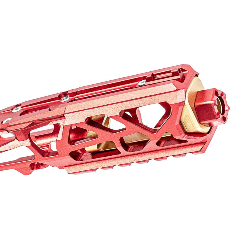 Looking for a lightweight upper with an aggressive design that gives your AAP-01 pistol a completely new character? Do you want faster and easier handling thanks to reduced weight while maintaining the strength of CNC-machined 6061 aluminum? Do you need an upper that is ready for TDC hop-up chambers, has a mounting plate for red dots, and includes threading for tracer suppressors? Then the FUKU-2 Skeleton Upper Set is exactly what you need. This upgraded version of the FUKU-2 upper is 45 g lighter due to its precision-cut weight-reduction windows. The upper includes a top mounting footprint plate for red dots, a short lower RIS rail for grips or lights, a standard 14mm CCW thread with a CNC protector, and a full set of fiber-optic sights. It is also compatible with compensators from previous FUKU-2 versions. As a bonus, it fully supports precision hop-up chambers with TDC adjustment. With a total weight of only 130 g, it adds speed and responsiveness without sacrificing durability – enhanced mounting points and stressed areas ensure long service life. If you want to turn your AAP pistol into a true masterpiece, combine this upper with more CTM external parts and, of course, complete it with the best internal upgrades. The rest is up to your imagination.