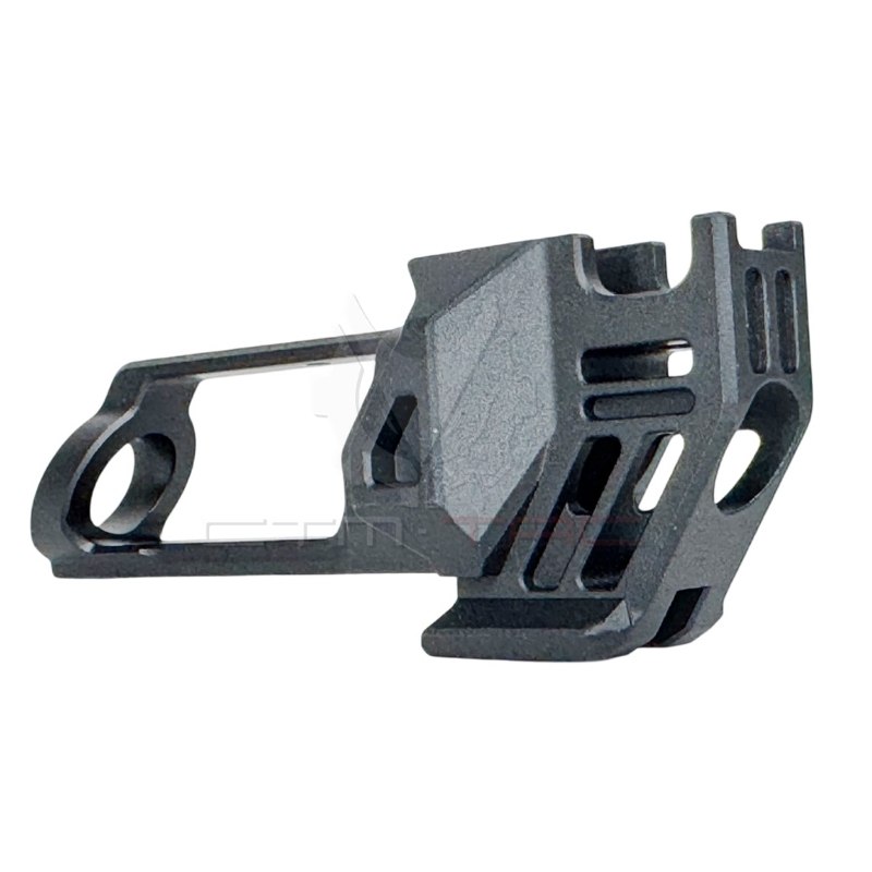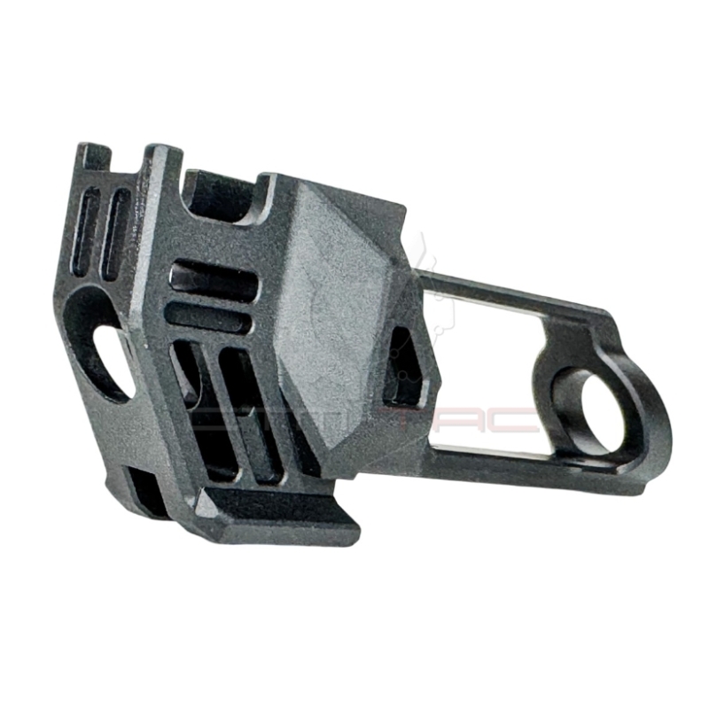 Do you want to give your gas-powered AAP-01 pistol a more aggressive look and added functionality? Looking for a durable compensator made from high-strength aluminum that fits your long CNC FUKU-2 upper? Or do you want to mount a tracer unit for visual effects during night shooting? The CNC FUKU-2 SHARK Cutout compensator from CTM TAC is made just for that. Its refined SHARK Cutout design gives the pistol a modern and aggressive profile while the low 56 g weight keeps the handling balanced. Thanks to the included outer barrel with 14mm CCW thread, installing tracer units or suppressors is easy. This compensator is intended exclusively for the long FUKU-2 CNC upper.