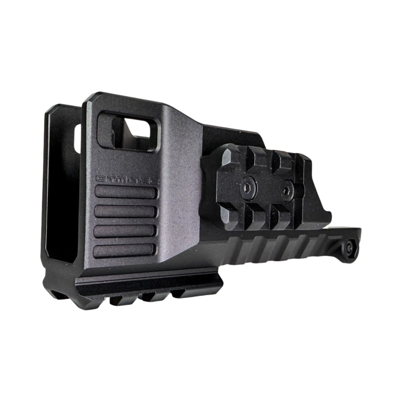 CTM TAC Extended Rail Blast Shield is designed specifically for the AAP-01 with the HPA M4XIMUS kit and fits perfectly without any wobble or play. The one-piece construction from 6061 aircraft-grade aluminum ensures high durability and strength. Thanks to integrated RIS rails on the sides and bottom, you gain additional mounting options for accessories such as tactical flashlights, PEQ boxes or vertical grips. The side rails are removable for modular use. In practice, this upgrade not only enhances the look but significantly improves stability and usability of the entire setup.