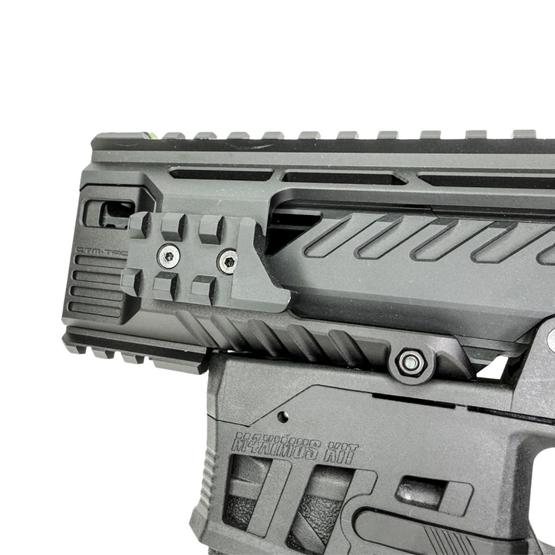 CTM TAC Extended Rail Blast Shield is designed specifically for the AAP-01 with the HPA M4XIMUS kit and fits perfectly without any wobble or play. The one-piece construction from 6061 aircraft-grade aluminum ensures high durability and strength. Thanks to integrated RIS rails on the sides and bottom, you gain additional mounting options for accessories such as tactical flashlights, PEQ boxes or vertical grips. The side rails are removable for modular use. In practice, this upgrade not only enhances the look but significantly improves stability and usability of the entire setup.