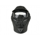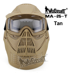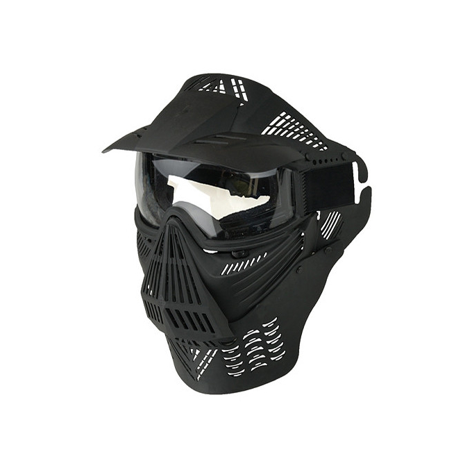 The mask is made of plastic. The mask consists of the goggles, the part covering the face and the neck and the part covering the forehead. The inner part of the goggles is layered with a soft lining minimizing the irritation and face injuries. The goggles are equipped with ventilation holes which minimize the gathering of the steam on the lenses. The elastic mounting band is equipped with length adjustment. The part covering the mouth, the neck and the forehead is equipped with ventilation holes. The mask is fully modular – it is possible detach some of the elements, it is also possible fully detach the goggles.