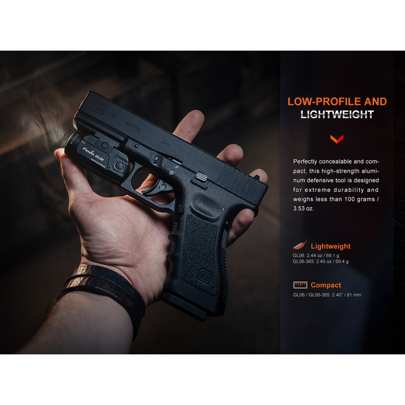 Fenix GL06 LED pistol flashlight is designed specifically for use on short guns equipped with the