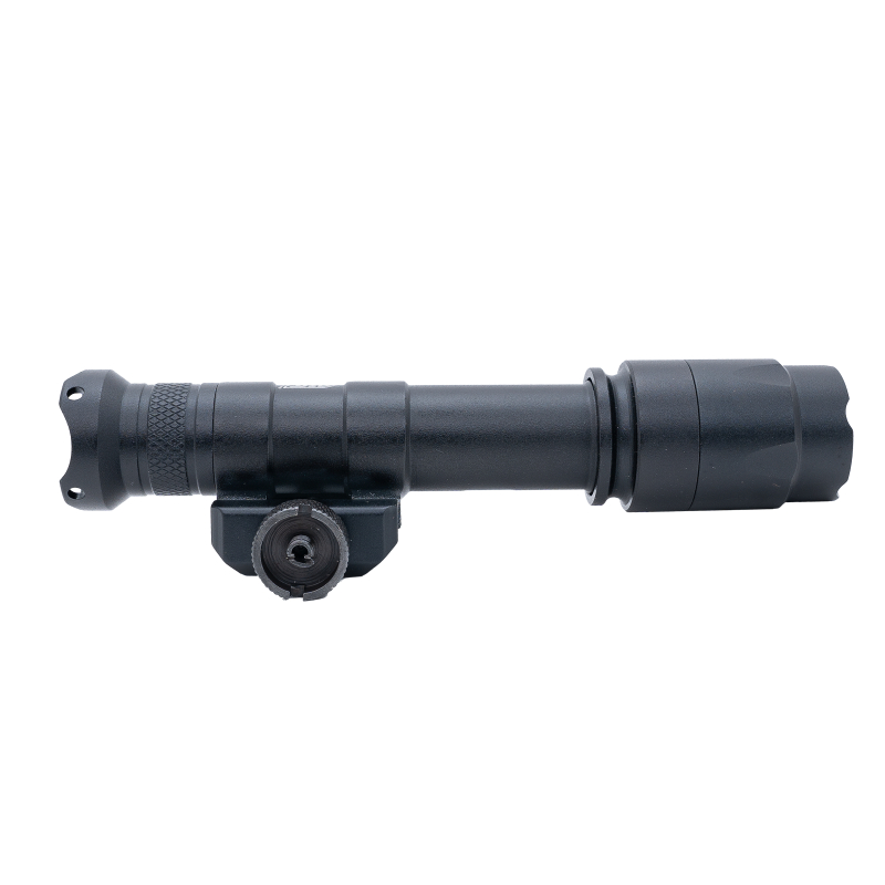 The flashlight can be easily switched on or off using the rear button. Alternatively, the included remote tactical pressure switch provides greater freedom and control during aiming or firing.