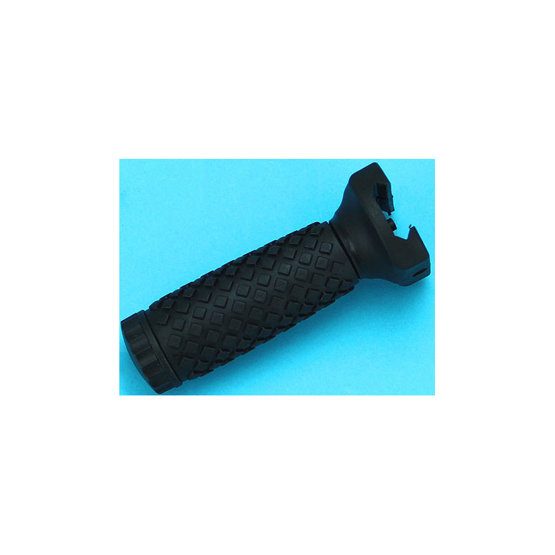 Aluminum Airsoft RIS Vertical Grip PK-5 by 5KU in black. Replica of the ZenitCo grip. CNC-machined aluminum construction. Dual screw mounting system for RIS rails. Built-in storage compartment with screw-on cap. Enhanced ergonomics for faster aiming and a firmer hold, especially on GBB rifles.