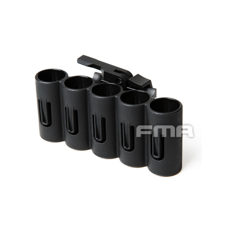 This practical holder by FMA is designed to increase the shotgun’s shell capacity by holding an additional five shells. Constructed from durable nylon polymer, the holder securely keeps shells in place for quick and easy reloading. The back of the holder features a QD (quick-detach) lever for easy mounting on a RIS rail.